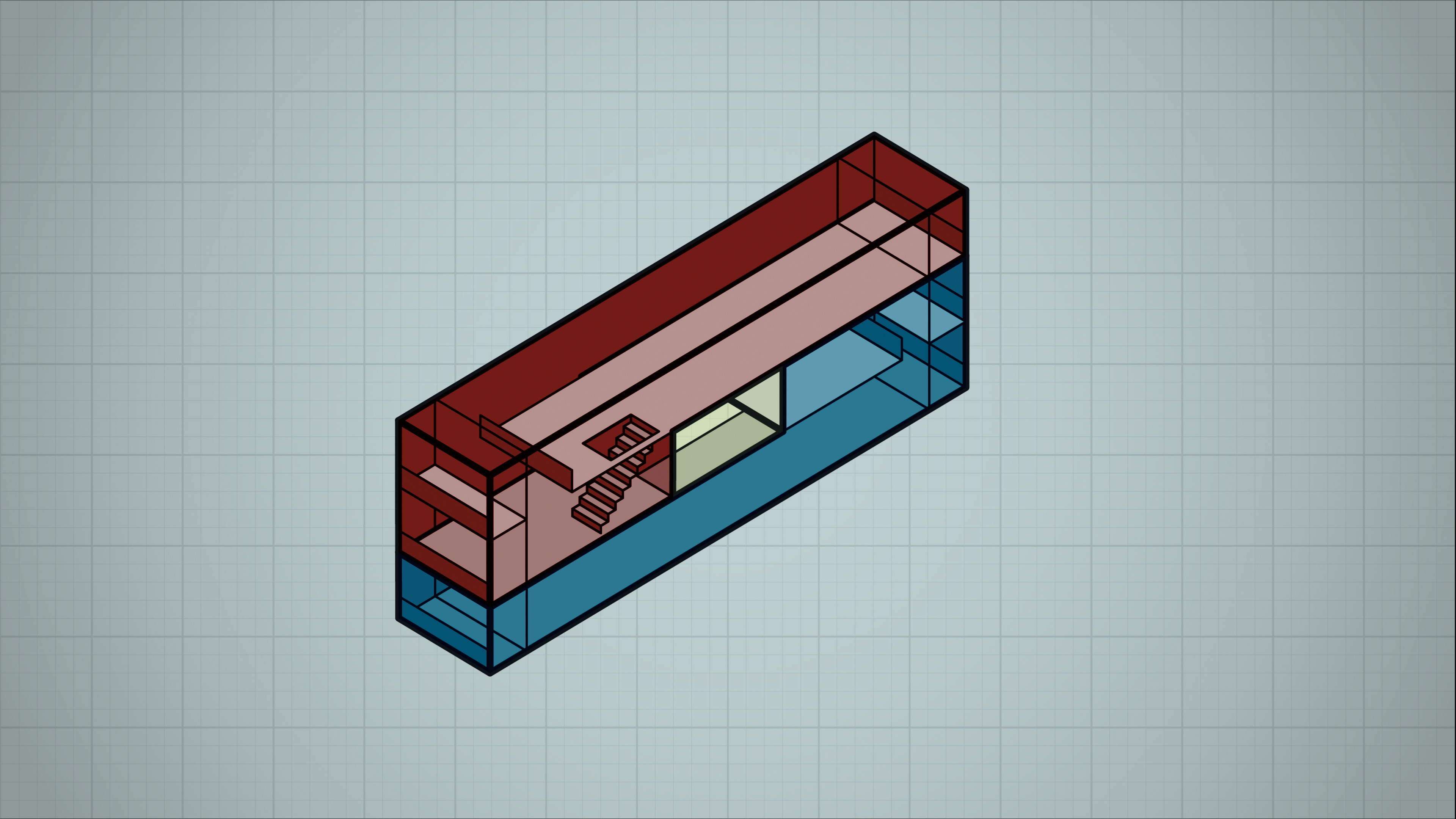 The original concept for this sequence was more ambitious. The 2D animations were designed to be motion-tracked directly into the concrete pillars of the building — making architectural theory appear to emerge from the structure itself. The previz below was shot on an iPhone to test and communicate the idea.